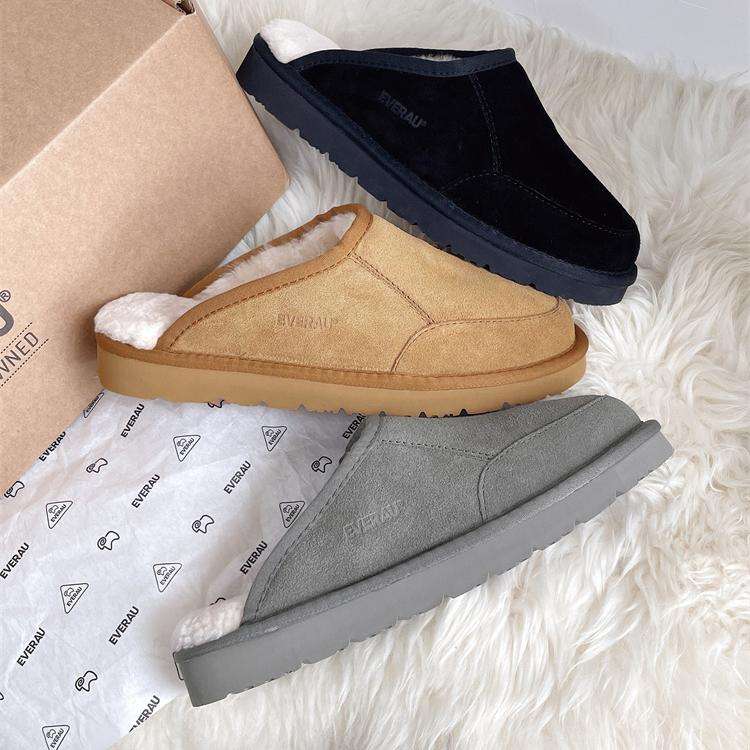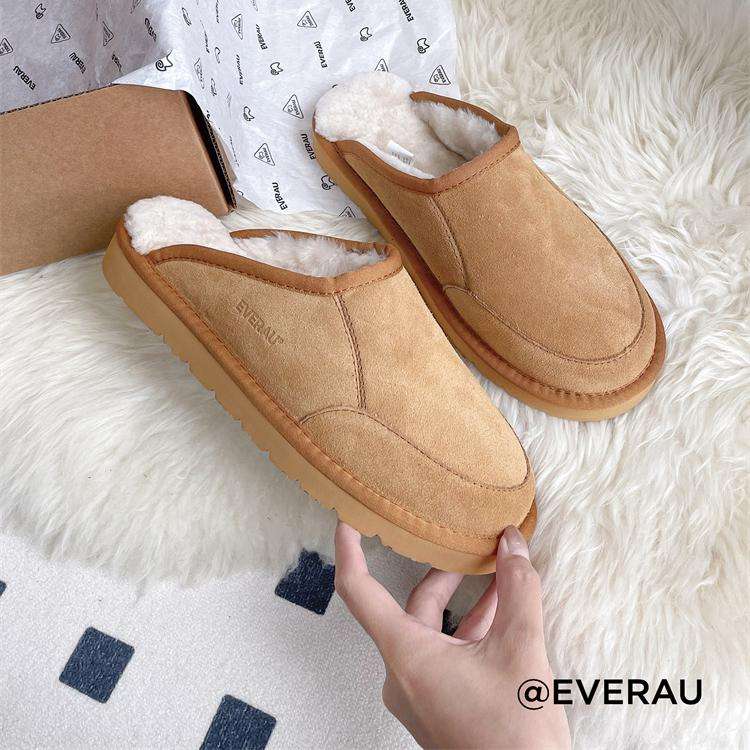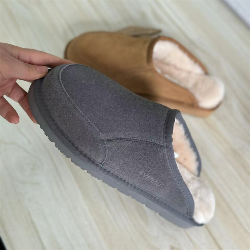 Australian Sheepskin Genuine Leather One-Piece Indoor Men’s Slippers Toe Box Thick Bottom Soft Sole Non-Slip Winter Warm Baotou