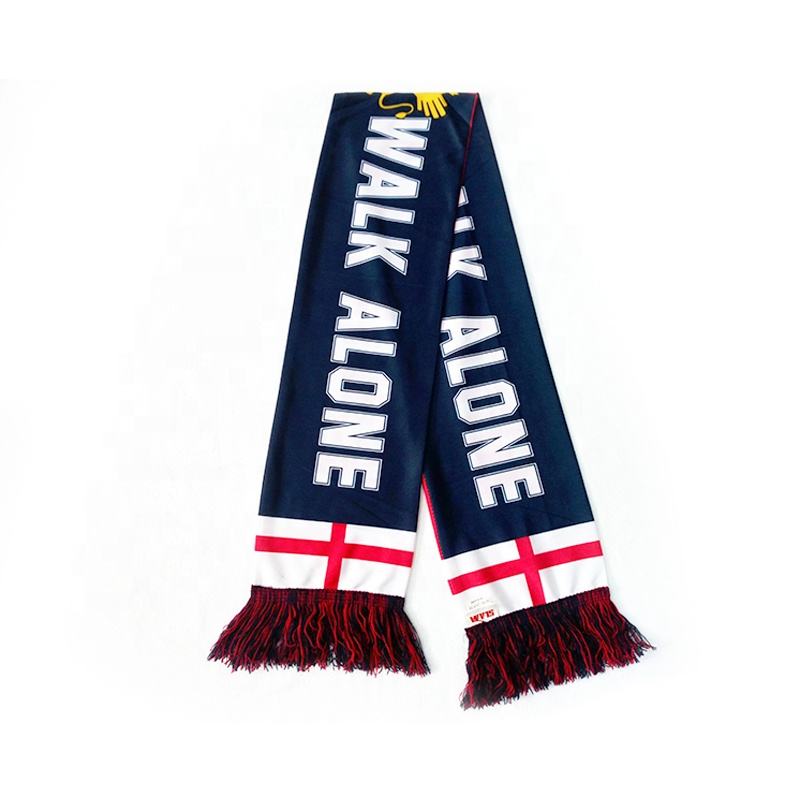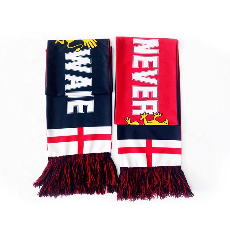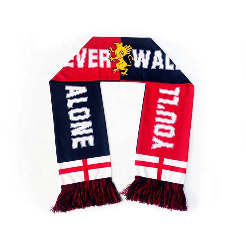 Hot Selling Custom Polyester Jacquard Design Soccer Fan Scarf Long Winter Style with Tassels Free Sample-Football Club Print