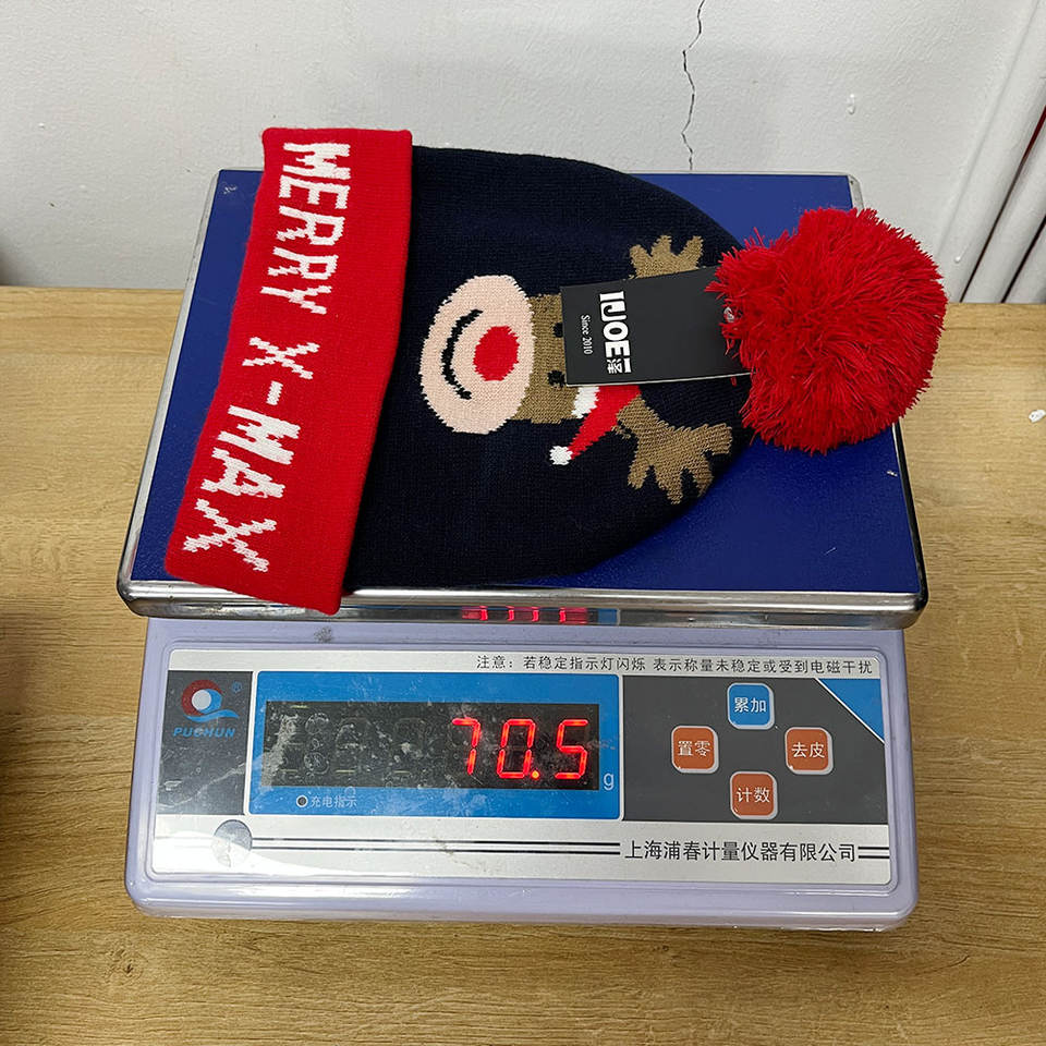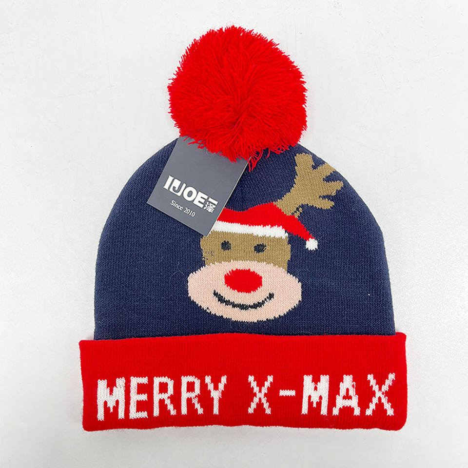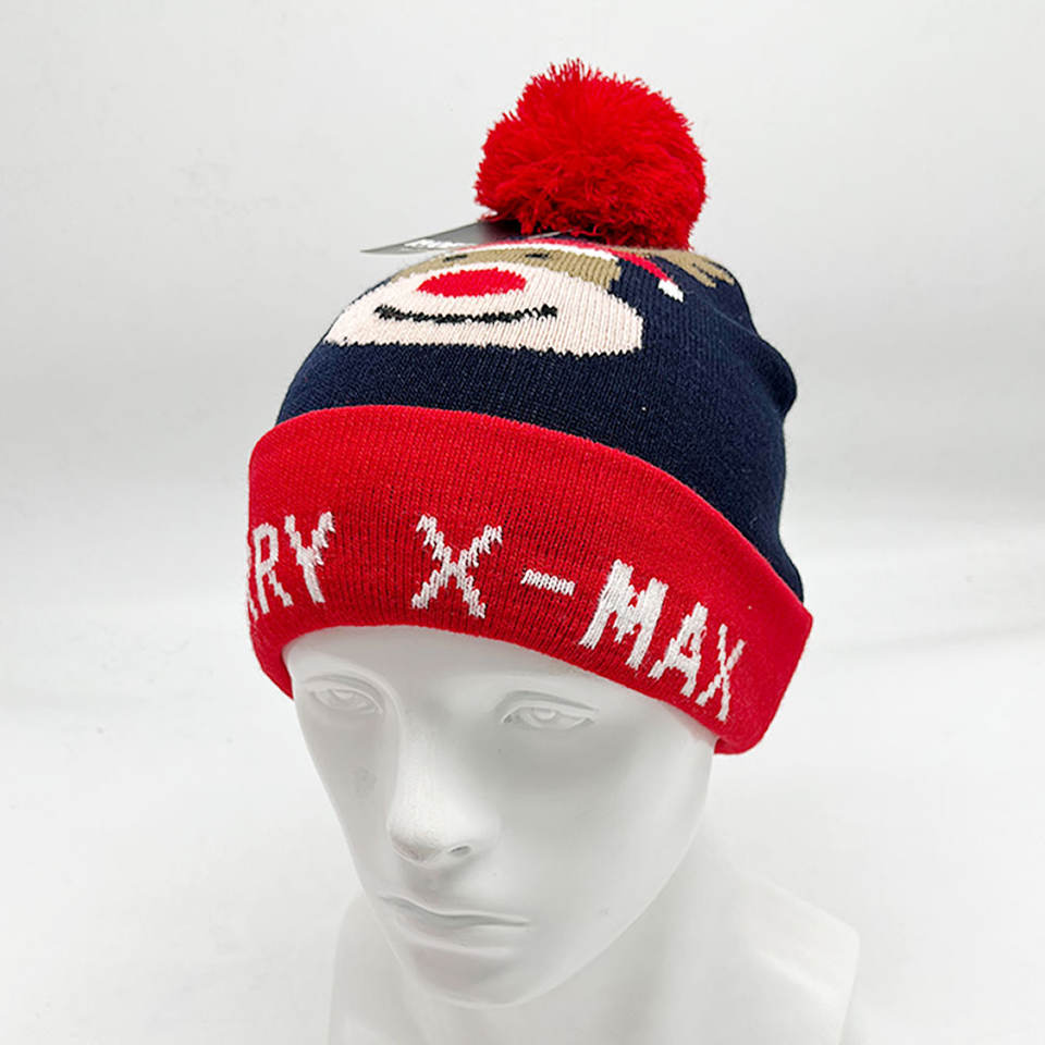 Wholesale 2025 Christmas Jacquard Bobble Pom Pom Knitted Beanie Hat Custom Logo Embroidered Acrylic Winter Hat Cap