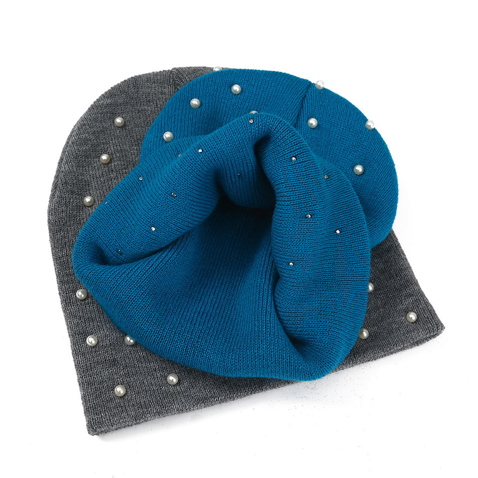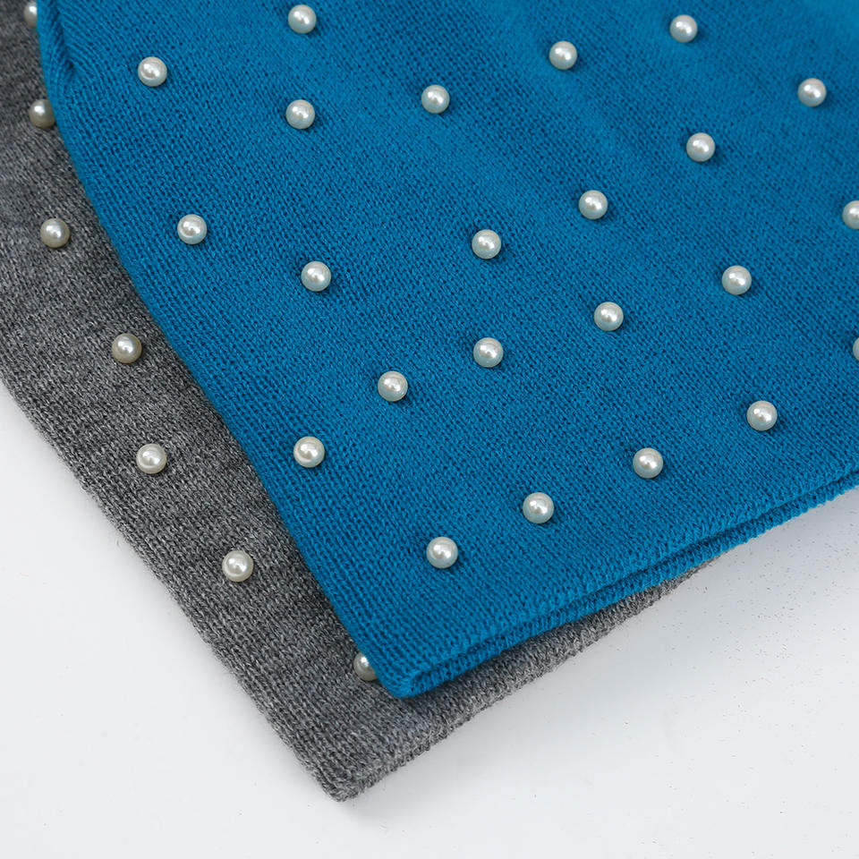 2025 Fashion Designer Winter Knitted Pearl Beanie Hat Manufacturer High Quality Beanies Cap with Custom Logo