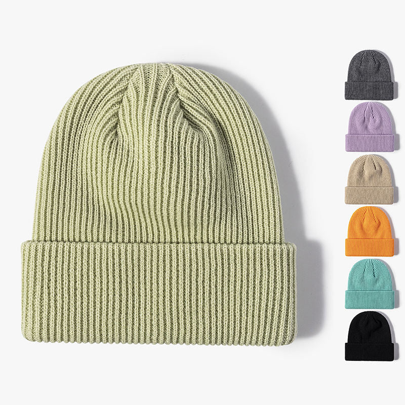 Wholesale Unisex Winter Warm 100% Acrylic Blank Plain Knitted Beanie Cap Hat with Custom Logo Embroidery Label Desig